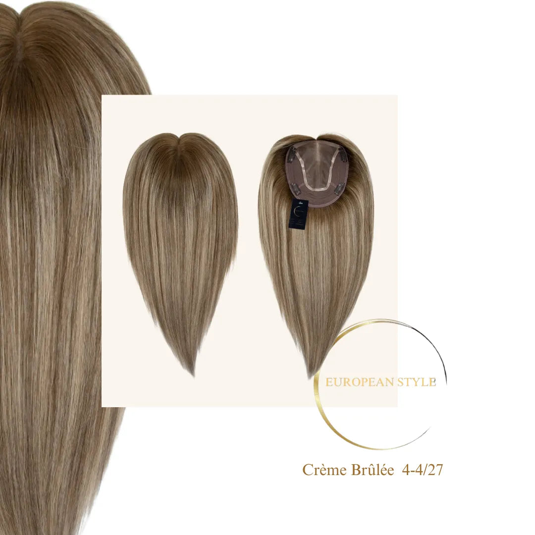Elevate your confidence with our European-Style Human Hair Toppers, crafted from 100% Human Hair for a flawless, natural look. Made from the finest quality, soft human hair, these toppers are designed to blend seamlessly with your own hair, providing the volume and coverage you need for a confident, comfortable look that feels as good as it looks.
